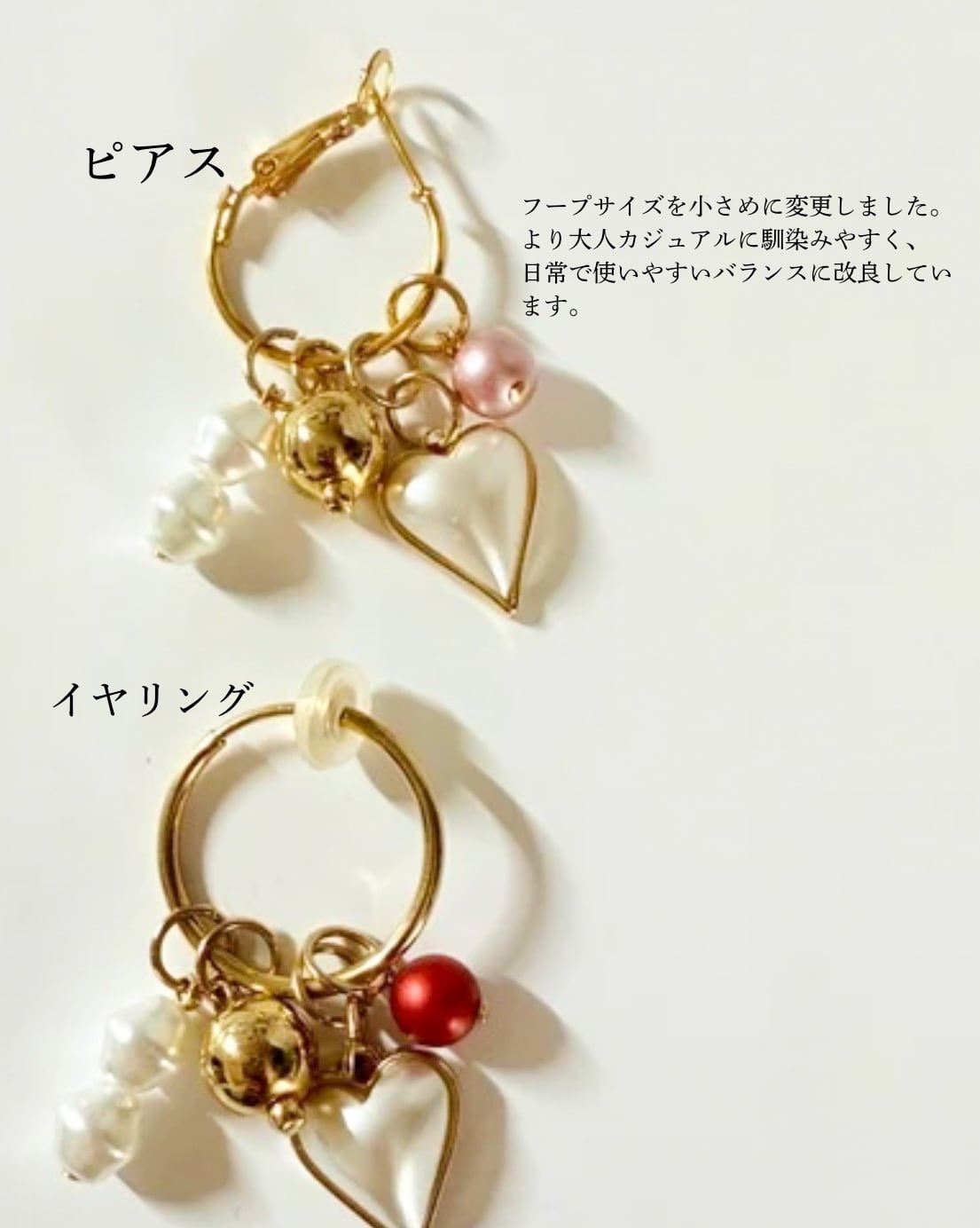 ※ピアスフープの大きさを従来より小さめに