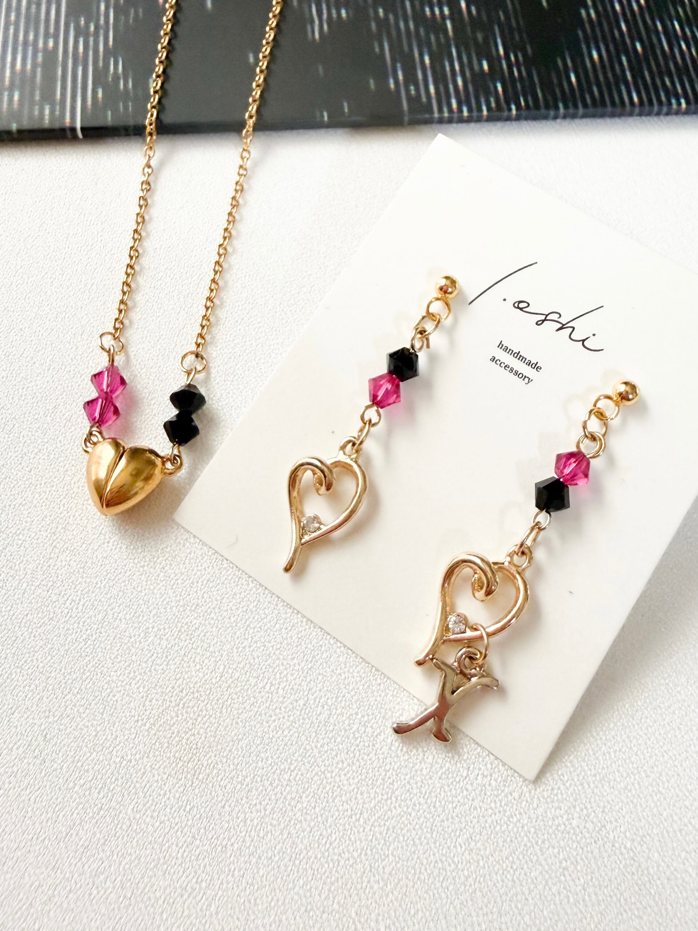 ハートにそっと引っ掛けるデザインにしました。