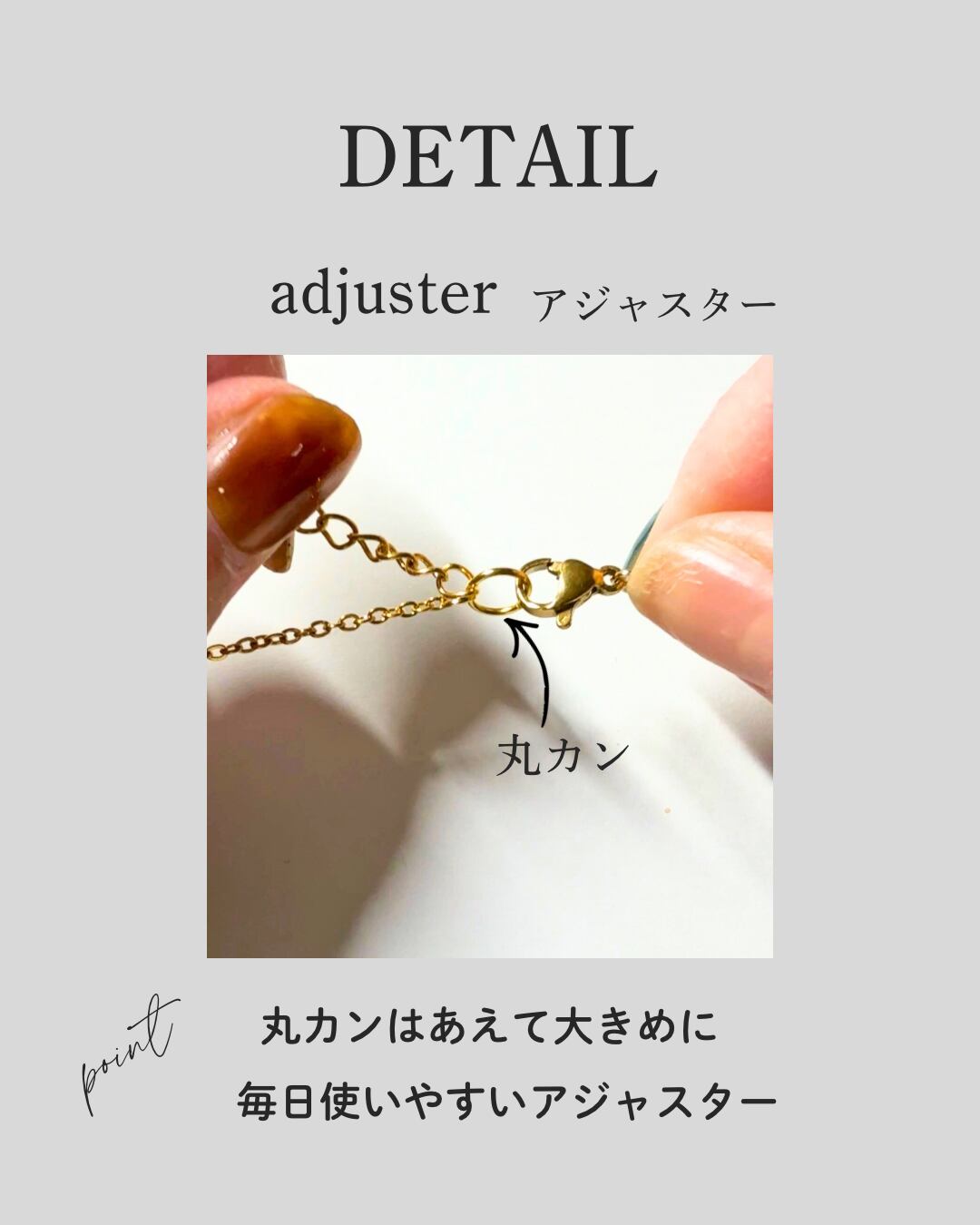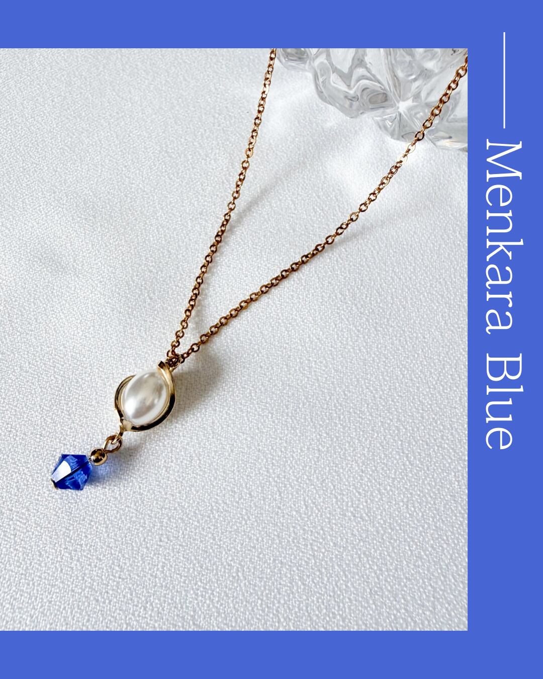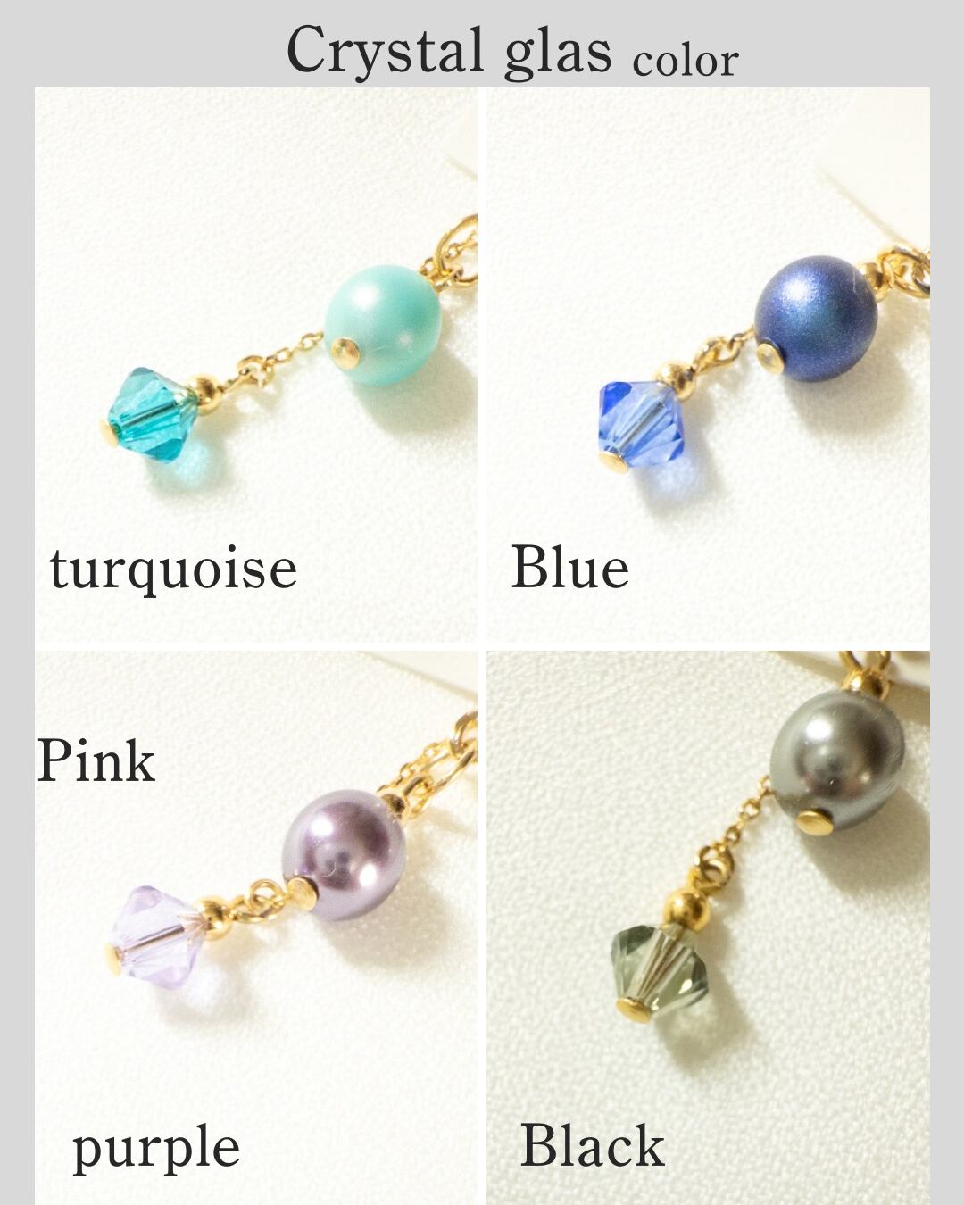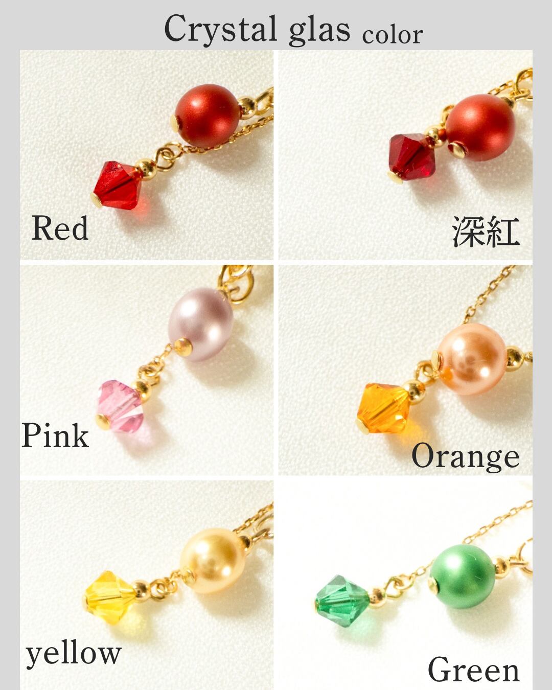 チェーン下のクリスタルガラスの色で違いを出しています。
