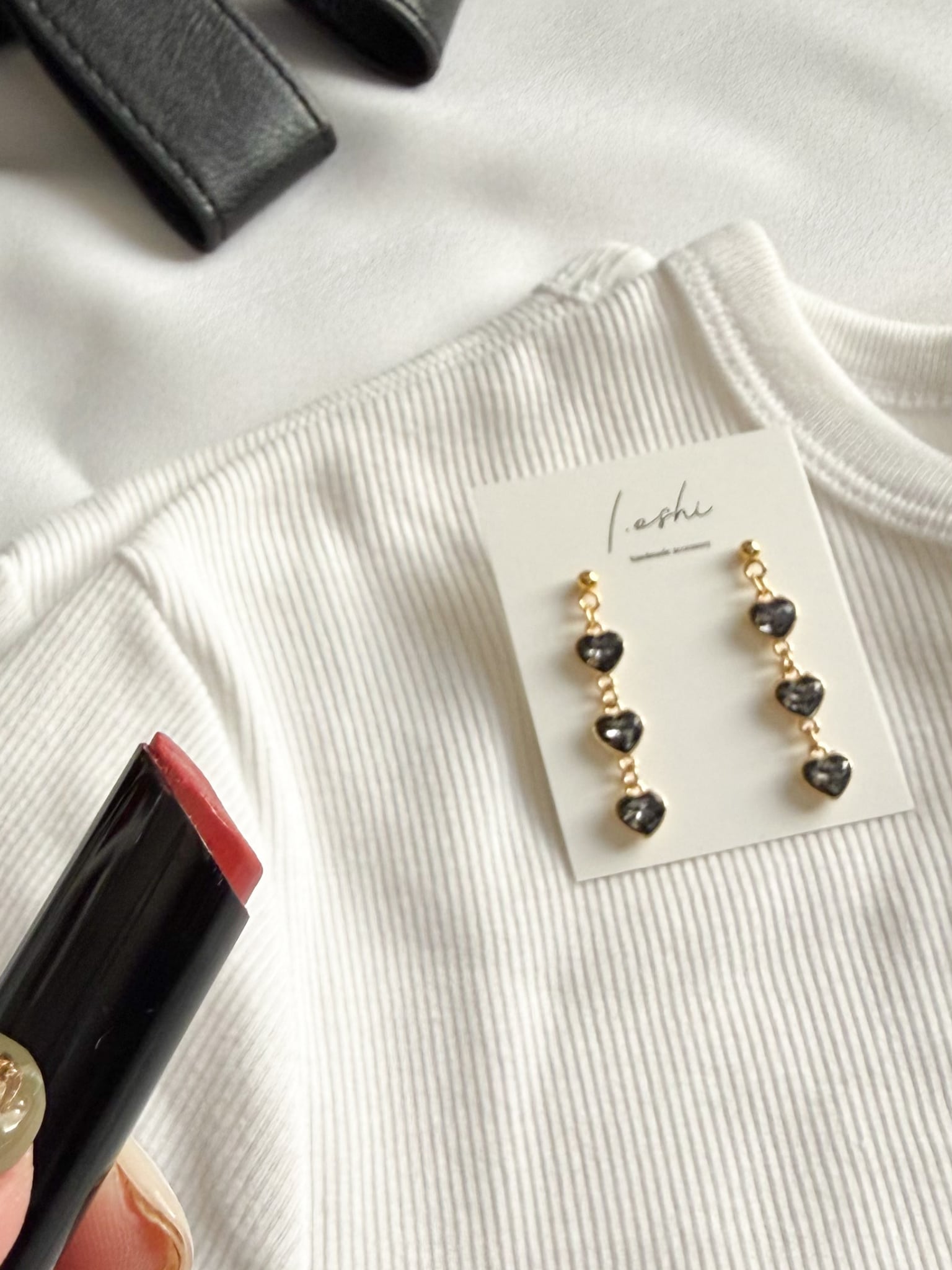 4/10 【一点もの/再販なし】Black Heart Drop Earrings