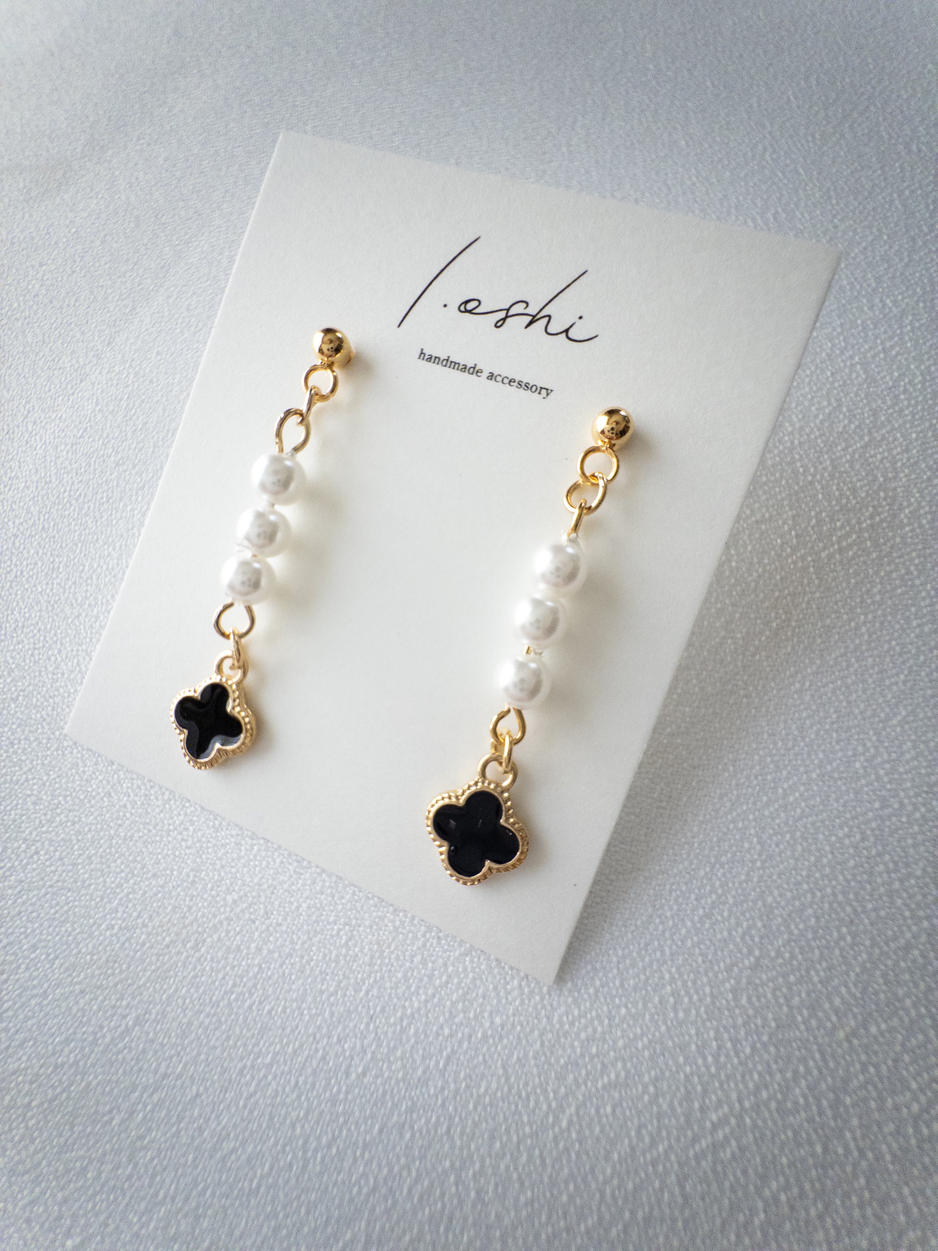 4/10 【一点もの/再販なし】Black Flower & Pearl Drop Earrings