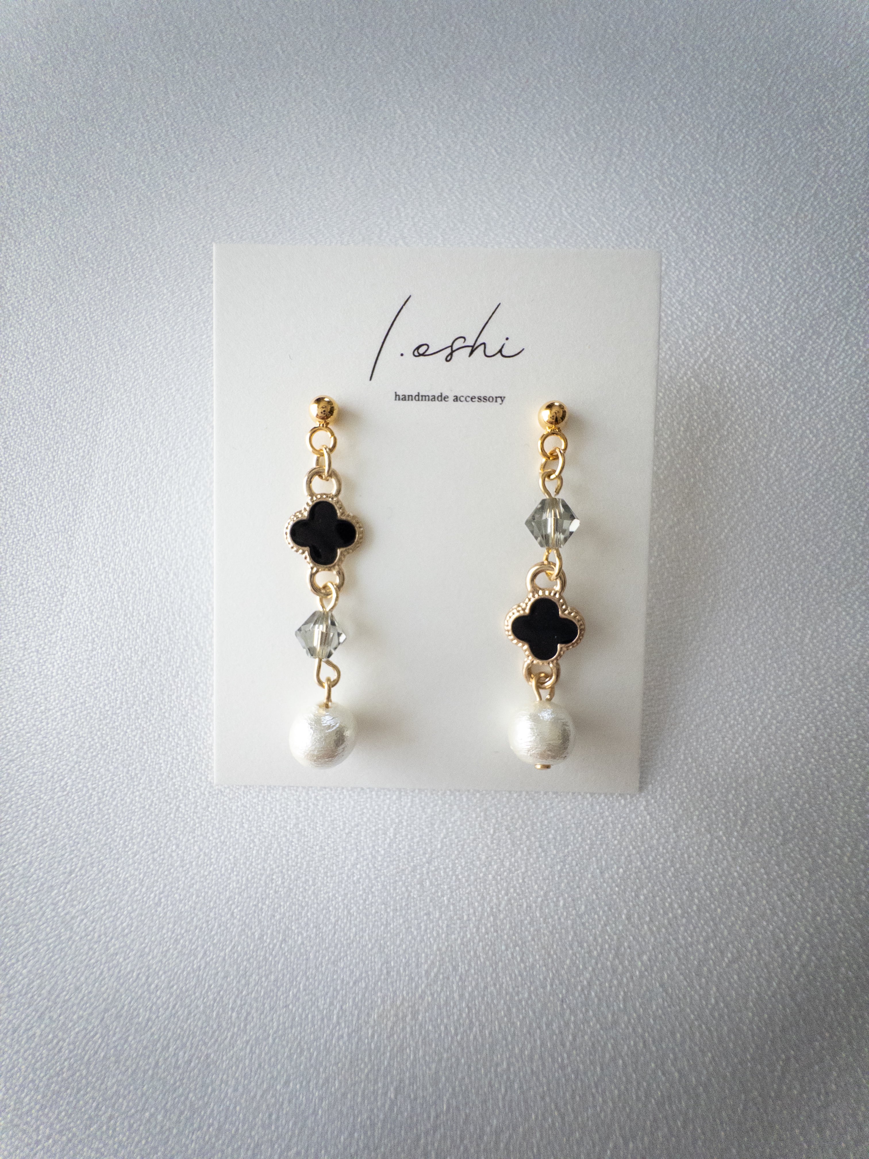 4/10 【一点もの/再販なし】Black Flower Crystal Drop Earrings