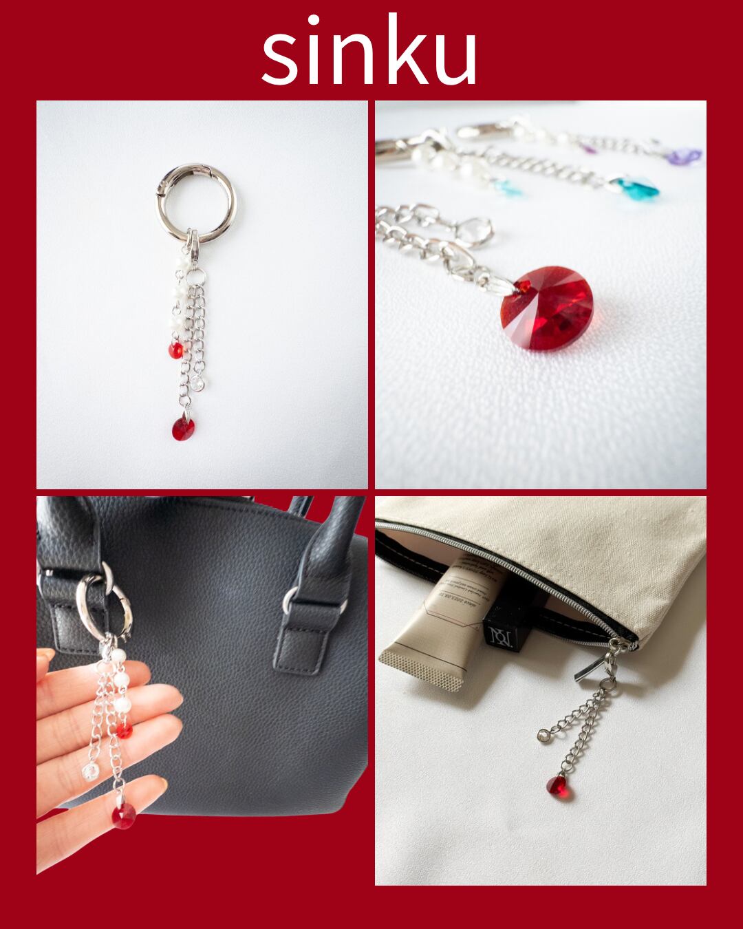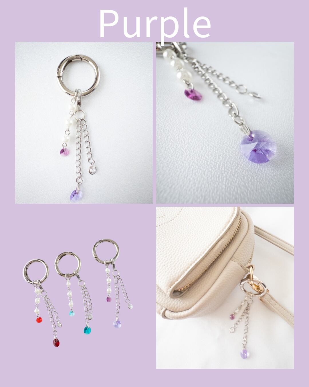 バッグだけでなくポーチや小物につけ替えて楽しめます。